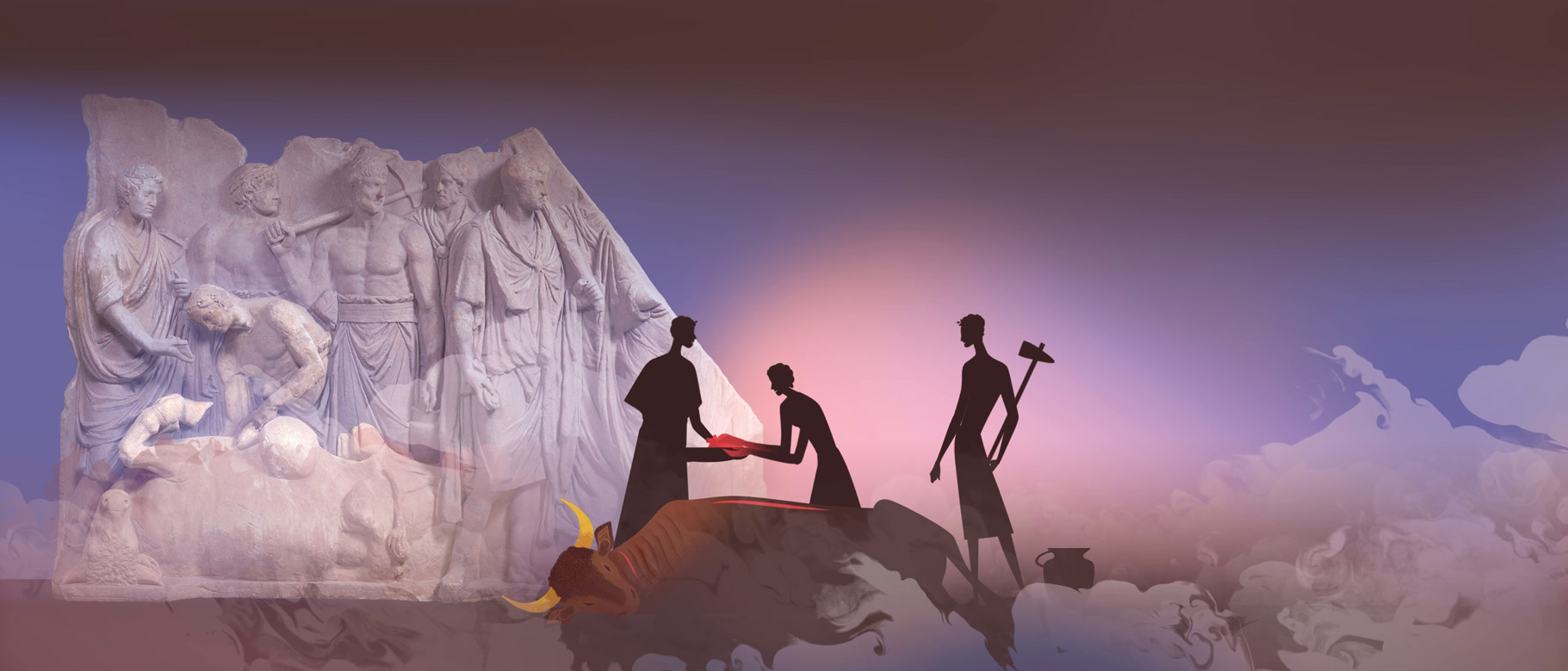Ce dispositif animé en 2D de 4 minutes a pour ambition de plonger le visiteur dans une ambiance visuelle et sonore évoquant le rituel du sacrifice de la religion romaine. Pour une immersion complète, l’animation est diffusée à l’échelle 1 par 3 vidéoprojecteurs et un ensemble amplificateur / enceinte installé dans un espace scénographique en U de section carrée. Le spectateur se retrouve au cœur de la scène.