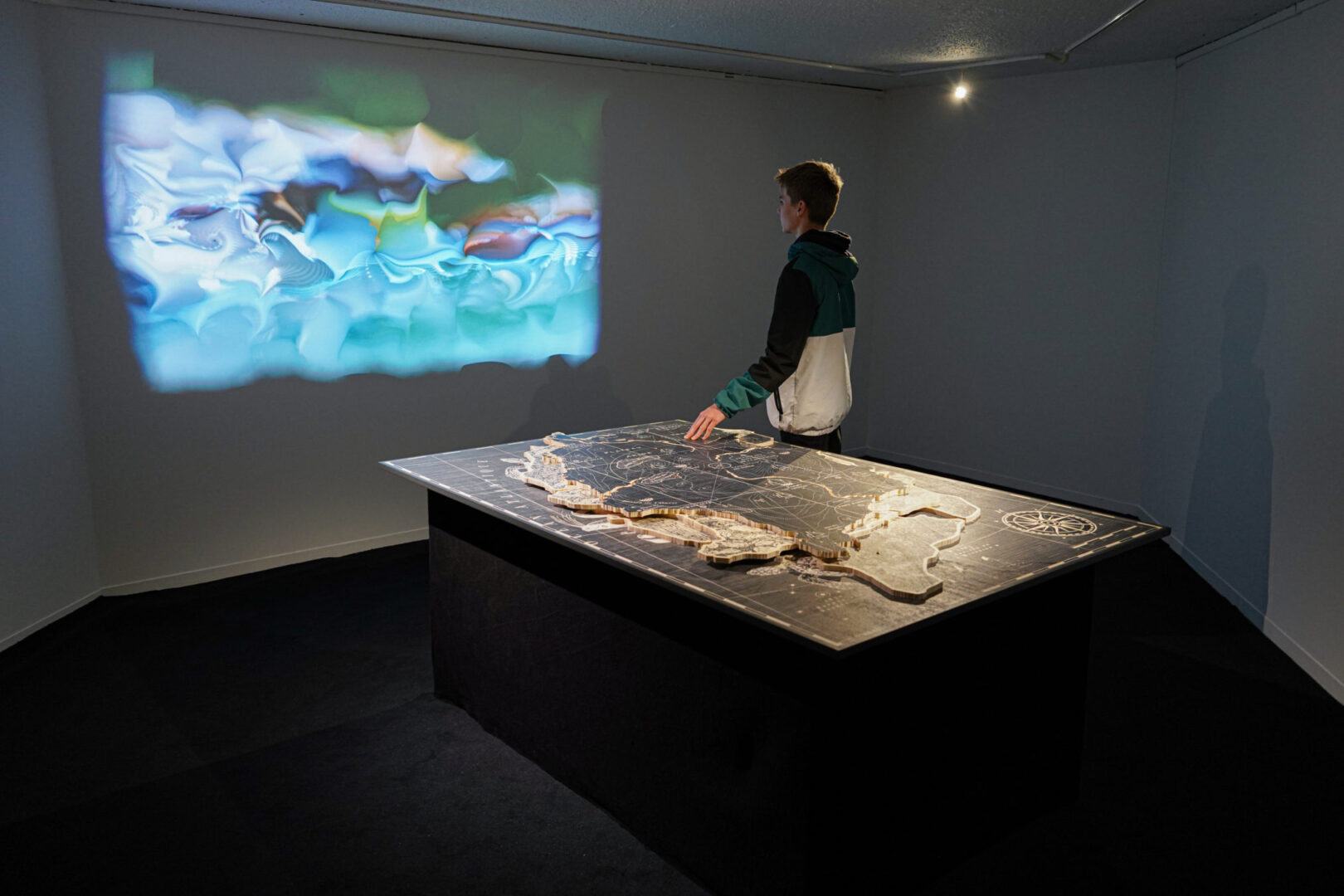 Pensé comme une expérience immersive, ce projet déploie un dialogue serré entre récit littéraire, design muséal et dispositifs numériques : cartographies, mappings vidéo, paysages sonores génératifs et objets à manipuler. Il fait dialoguer fiction et réalités scientifiques en installant un univers cohérent et sensible où chaque artefact virtuel ou physique devient porteur de sens.