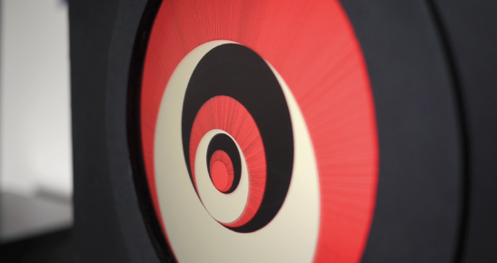 En 1935, Marcel Duchamp crée les Rotoreliefs, une série de 6 disques optiques imprimés recto/verso. En tournant à 33 tours/minute, les Rotoreliefs font surgir la 3ème dimension. Présenté en 1935 au concours Lépine à Paris, Marcel Duchamp ne vendit qu’un seul exemplaire de ses disques. Quelques années plus tard, les Rotoreliefs devinrent des pièces recherchées des collectionneurs.